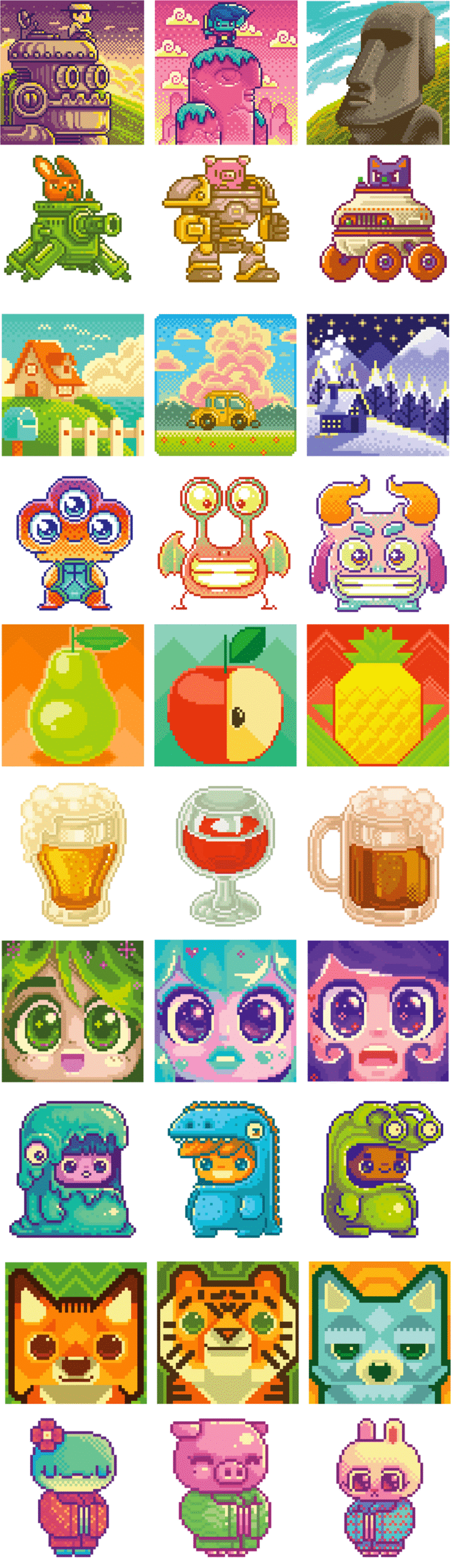 Creation of various pixel art illustrations for the mobile game Color by Numbers. Nearly 2,000 illustrations with a variety of themes and styles were created using the pixel art technique.