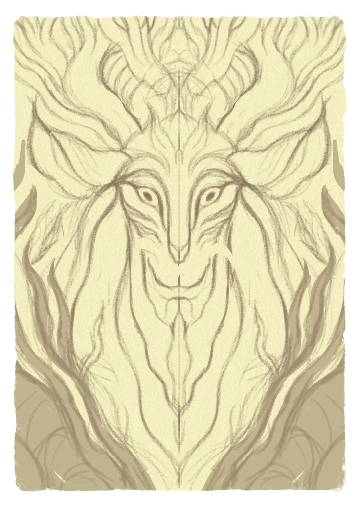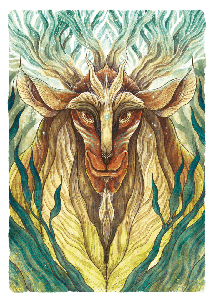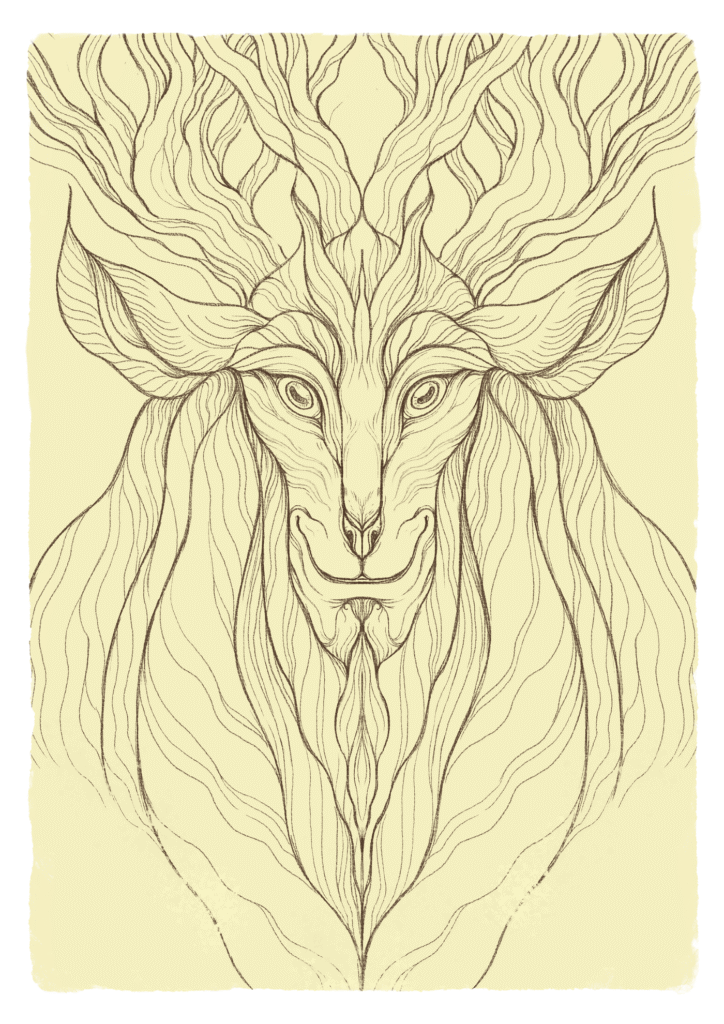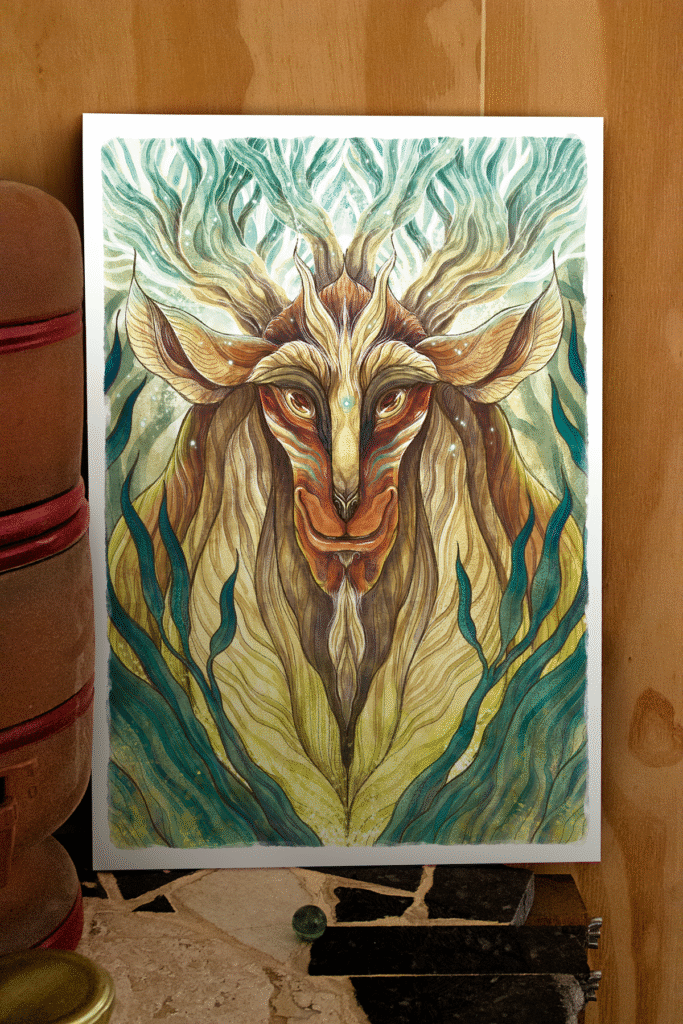 Digital watercolor illustration developed for poster. Inspired by the character Shishi-Gami, the God of the Forest from the animation Mononoke Hime, by Hayao Miyazaki.